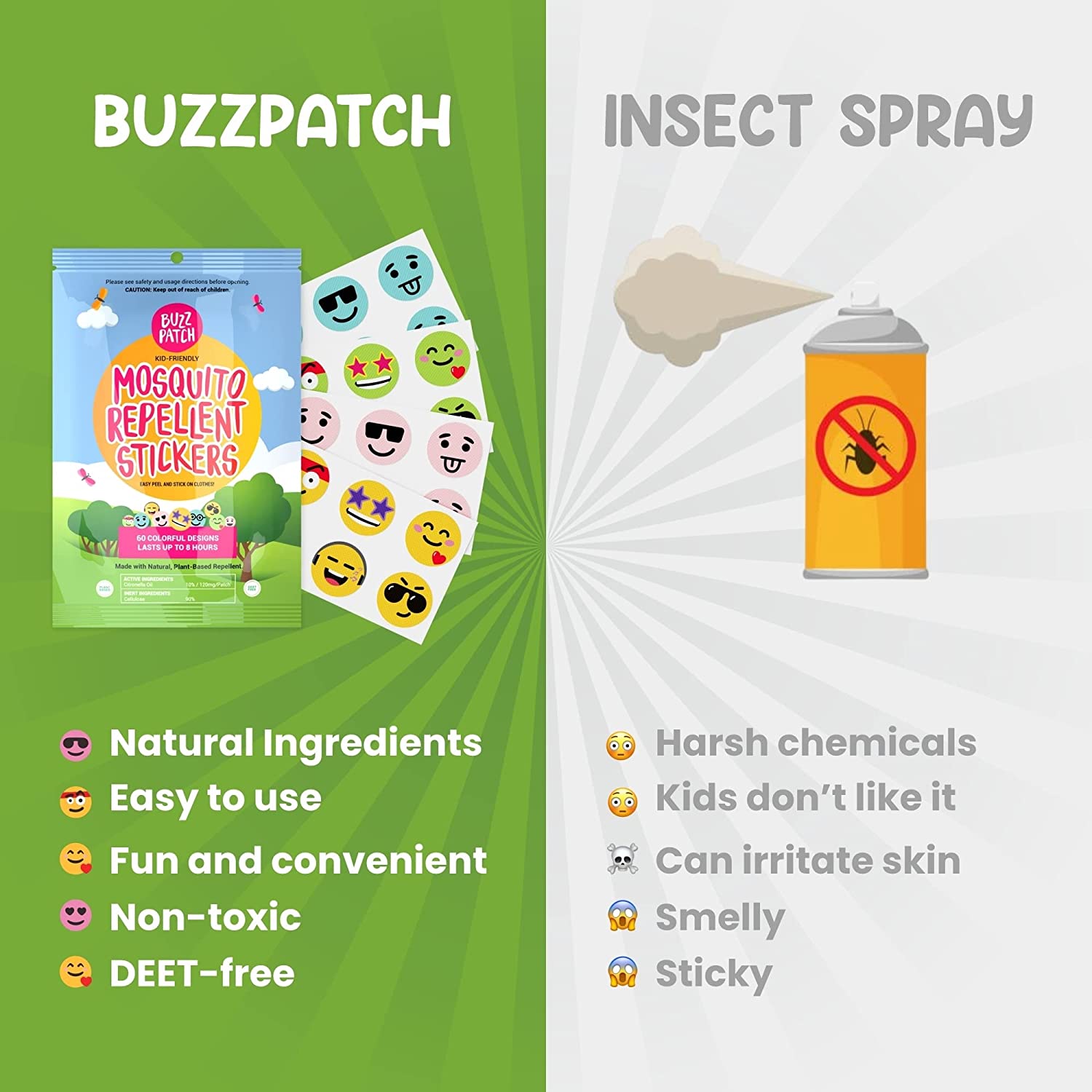 • SAFE AND EFFECTIVE: Created with you and your kids in mind. This mosquito repellant sticker is made with all natural, plant-based ingredients. BuzzPatch is non-toxic and DEET free and uses the most effective and safe essential oil combination.