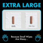 • EXTRA LARGE FLUSHABLE WIPES: When it comes to flushable wipes, size matters. And we’re big. Up to 35% larger than the other guys. Because nobody wants a little wipe after a big burrito